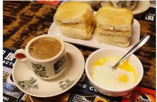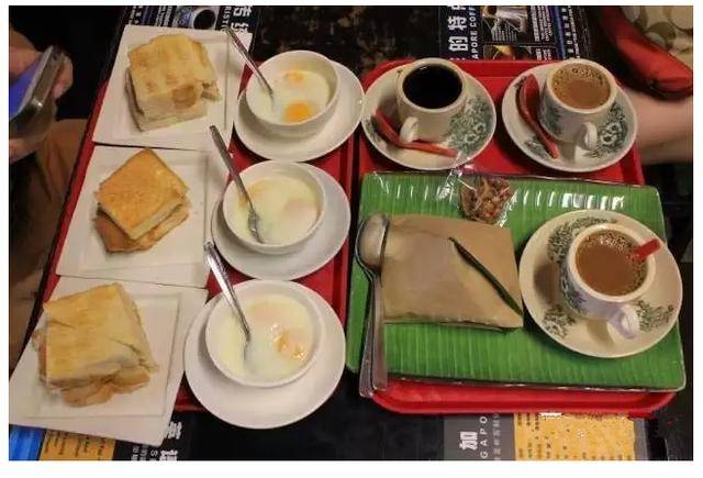新加坡国民早餐小清新版,当属著名的“咖椰烤吐司+半生鸡蛋+南洋咖啡”的完美组合。