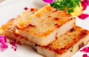 萝卜糕是将蒸米粉与白萝卜裹成块,与鸡蛋一同煎至金黄。它是一道咸味并具有浓浓奶油味的菜肴。好玩的是,这道菜可分为“白色”与“黑色”两种。“白色”萝卜糕是原味的,“黑色”版本则添加了厚重的甜酱油,使萝卜糕在烹调的过程中由于焦糖溶化形成淡淡的浅褐色。