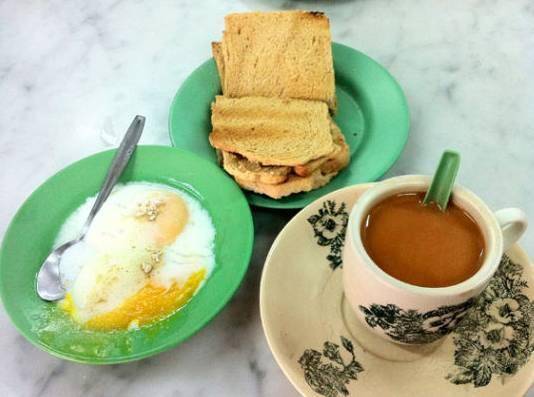 在新加坡,新加坡人喜欢以涂抹了咖椰和黄油的吐司开始一天的美好时光。kaya咖椰吐司是新加坡当之无愧的国民早餐,每间咖啡馆均有提供。咖椰是用鸡蛋、糖、椰浆以及香兰香料制作而成的一种当地调味酱。通常抹在烤的吐司片上,配有小块的黄油。同时搭配着吃的还有仅仅才3分熟的养生蛋,热饮是咖啡或拉茶。纯咖啡叫咖啡乌,加糖加奶叫咖啡丝。如果您不喝咖啡,可以点一杯奶茶。热奶茶由壶里倒出,冲开茶杯底的炼乳搅拌均匀,非常地香醇。
