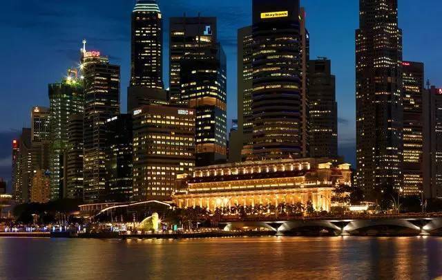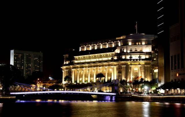 亚洲十佳酒店第三名的浮尔顿酒店。作为新加坡顶级的酒店,在夜间犹如一颗钻石闪烁于整个滨海广场区,十分耀眼。