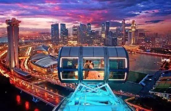 42层楼高的摩天轮,轮体直径达150米,旋转一周约用30分钟时间。摩天轮转得越高,看得越远,可以饱览约45公里内的景色,包括印度尼西亚的巴淡岛、民丹岛,以及马来西亚的柔佛州等。