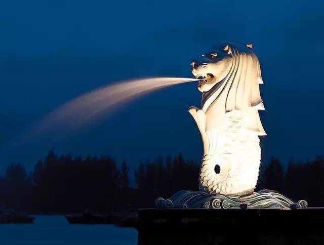 夜晚坐在鱼尾狮下看夜景,感受喷泉水珠的沁湿