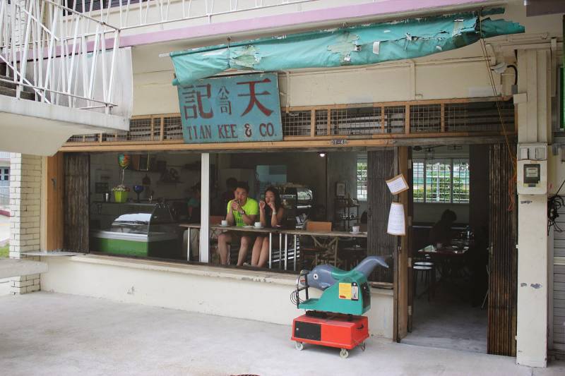 天记咖啡曾经是由一对老夫妻经营的、有54年历史的粮食店。目前的店主想接手该店时,前业主决定退休。但是咖啡厅仍然保留了粮食店的原始名称和原来装饰的一部分。这里的饮料菜单主要集中在咖啡,还有一部分茶。这里所有的蛋糕都是由网上流行的面包店供应,推荐榴梿、香蕉巧克力松饼芝士蛋糕。虽然目前大部分的食物都来自其它地方,但是,这里怀旧的环境和谦卑的服务绝对会吸引人们参观。