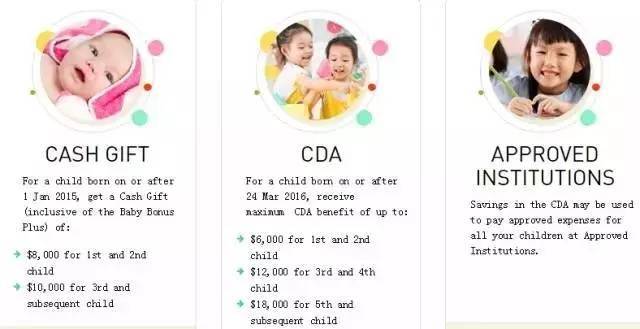 公民生孩子就能获得8,000新币的婴儿花红,等生到第三个宝宝就给10,000新币,还有4,000新币的医疗补贴,并且鼓励家长存钱到CDA账户(儿童发展户口),政府会dollar to dollar matching(你存一元,政府相对补贴一元),账户到6,000新币封顶。简单算一算,刚出生的时候最多能有18,000新币进账呢~除此之外,还有针对新生儿父母的税务回扣等补贴。