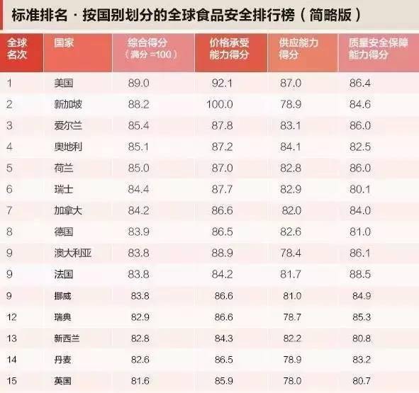(*食品安全,全球排名第二)