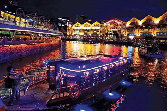 如今,河岸边曾经的商铺和仓库经过翻修,被改造成娱乐和休闲场所。昔日河上的运输工具——驳船,变为了游客们游览新加坡河的交通工具。虽然新加坡河的船运和贸易功能减弱,但繁华依旧、风景更胜。到了晚上,缓缓流淌的新加坡河畔,满是华灯初上的餐馆、酒吧,整条街都呈现出一种异国情调。灿烂的灯火、人声鼎沸的步行街道,趁著驳船,坐拥河畔风光,河岸边众多的大楼以及现代化商场的灯火,和水面中的倒影互相辉映,别有一番风味~
