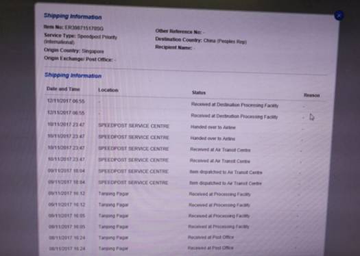 带着疑问我咨询新加坡邮局客服,客服竟然说:”我们说四天邮到是指四天邮到中国目的地,经查询您的包裹11月12号就已经到达目的地了。那么为什么我家人还没收到?客服一推二五说:“请与当地邮局联系”