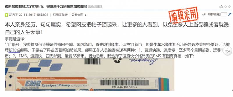被新加坡邮局坑了87新币,寄快递千万别用新加坡邮局