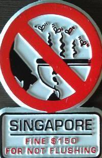使用厕所后不主动抽水,初犯将被罚款150新元并拘留;再次违犯光罚款就要500新元。