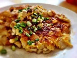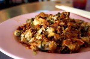 在新加坡的食阁,这是一款深受外国人和本地食客青睐的一道美食。售卖菜头粿的店家通常也会售卖蚝煎,因为它们的烹饪技法差不多类似。平底锅把油烧热,放上蚵仔、搅拌后的鸡蛋、茼蒿菜(或小白菜,甚至空心菜、豆芽菜等其他蔬菜)后再淋上太白粉芡水,待蚵仔熟时盛起,淋上特制酱料后即可食用,味道鲜美。