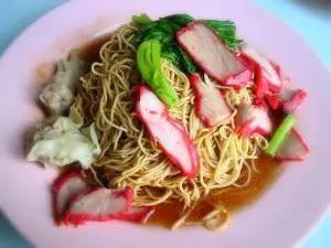 新加坡的云吞面很有可能是受了香港美食的影响,但是渐渐也根深蒂固的有了自己的文化特色。“干”的云吞面,浇上一些淡甜酱,几片叉烧,猪肉馅儿的云吞饺,再配上一小碗汤,就构成了最典型的新加坡版本的云吞面。如果喜欢吃辣,可以在面中加入辣椒酱,给小孩子吃的不辣的面中则是用甜番茄酱调制的。有的云吞饺是炸过配在面中,有的则是煮过放在汤中的。