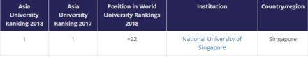在最近更新的2018泰晤士高等教育世界大学排名中,新加坡国立大学再度夺得亚洲魁首,连续第三年卫冕,窥一斑而知全豹。
