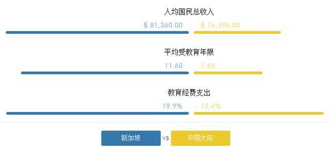 目前,新加坡与中国大陆在各方面的比较(北上广港的个体差距要小很多)