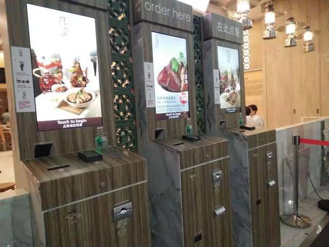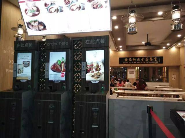 这是一家全自动化的餐馆,门口立著自己点餐的机器。在麦当劳、肯德基这些快餐店见到不足为奇,没想到这样的老字号也有~