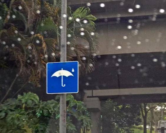 路上总有小雨伞的标识,我还以为是下雨天提供雨伞呢!其实是告诉摩托车自行车骑手,前方有避雨的地方,大桥底神马的!