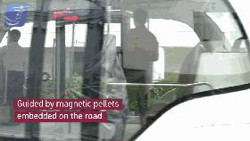 这个外观超可爱的无人驾驶小型巴士是采用磁托盘来导航,最高行驶速度达每小时40公里。