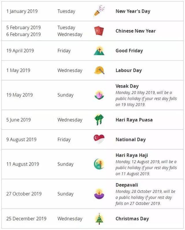 时间总是跑得很快的,转眼2018年已经到5月份啦!虽然还剩下7个月才到2019年,可是新加坡人力部已经等不及2018走完就已公布了2019年的假期时间!