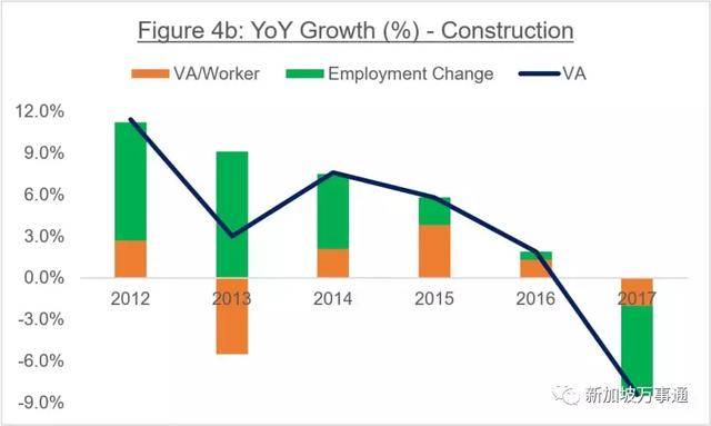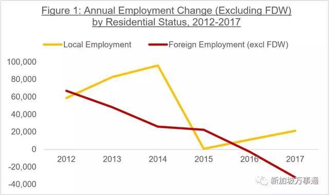 从图表中,我们可以清晰地看到,从2012年到2017年,新加坡外籍工作人员的增长数量几乎是直线下降的!2016年后更是呈负数增长,也就是直线下降状态。