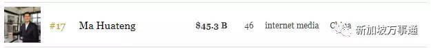 腾讯集团的创始人马化腾以453亿美元的身家成为了此次中国富豪第1名,同时,也成为亚洲第1富豪!!!而且他还首次跻身进了全球排行榜的前20名!位列第17。