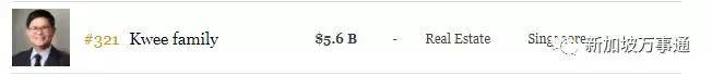 邦典置地集团的郭氏家族此次在新加坡排名第四,在全球排名第321位,身家为56亿美元。