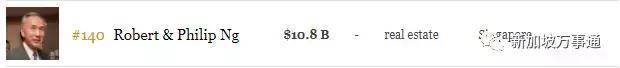 今年领跑新加坡富豪榜单的仍然是远东房地产机构的黄志祥和黄志达兄弟,两人以108亿美元的身家蝉联新加坡首富,在全球排行榜上为140名,较去年相比,下降了10名。