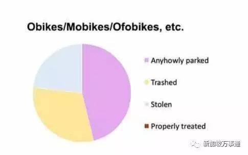 最后一个饼状图反映了新加坡现在很普遍的一个问题,就是共享自行车的破坏问题,万事通也曾经报道过好多次(参考:这些堪称宇宙最奇葩的小黄车新虐法,只有在高素质的新加坡才能看到~)
