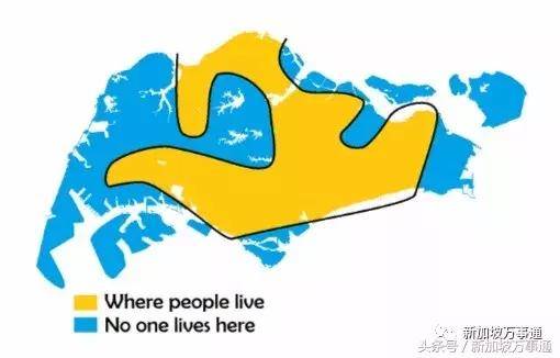 蓝色代表着没有人居住的地区,一般就是指工业区及新加坡武装部队训练基地等地区。黄色地区就代表着新加坡居民区。