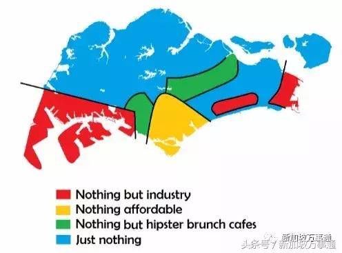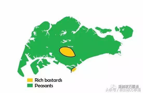 这个划分方式真的是很扎心啊!把新加坡划分为了两部分:有钱人的住宅区(黄色)和平民的住宅区(绿色)。