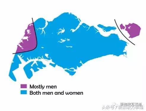 原来,是因为这些标明“大多数为男性”的地方是军事基地,如西部的登加空军基地和双溪格当军营、以及东部的步兵训练基地德光岛(Pulau Tekong)。
