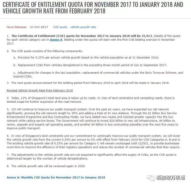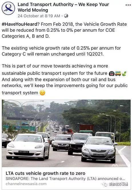 这还不算,新加坡陆路交通管理局已经发布最新公告:自2018年2月起,新加坡将正式停止发放新的COE(拥车证)!