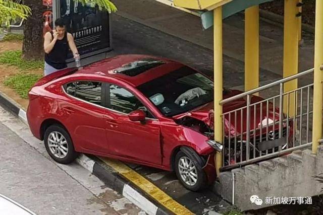 就在上周五(1月26日)清晨,一辆红色马自达汽车突然像失控了一样,撞进了人行道!接着又冲上了裕廊东中路靠近第134座组屋旁的行人天桥楼梯口。