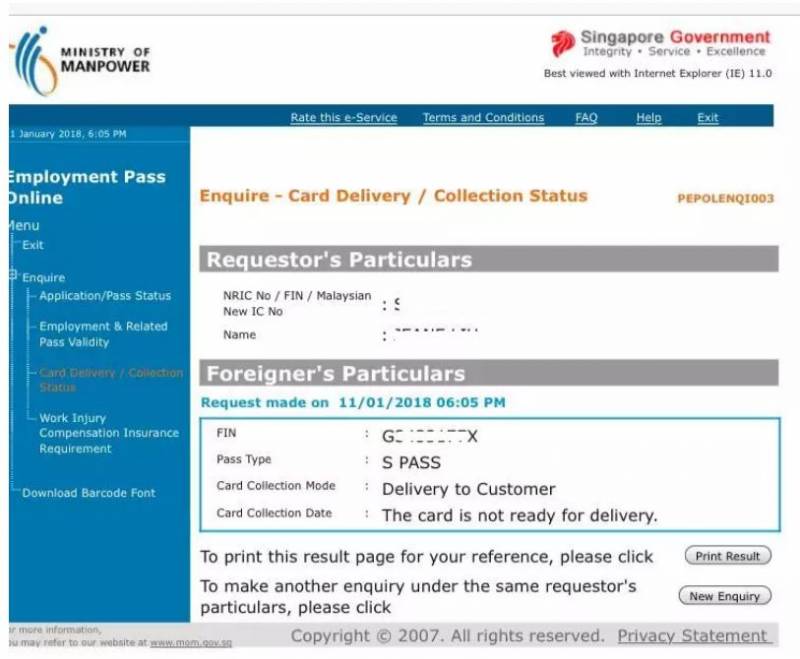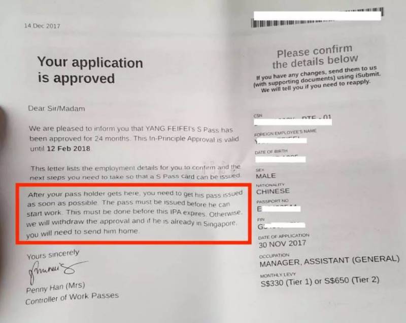 在查了张先生的SP准证申请记录后,我们发现他的准证已经获批,但不知道为什么雇主没有带他去录指纹。如果遇到类似的情况,你可以去新加坡人力部询问,为什么还没有拿到准证,或是为什么雇主没有带你来“按手印”。