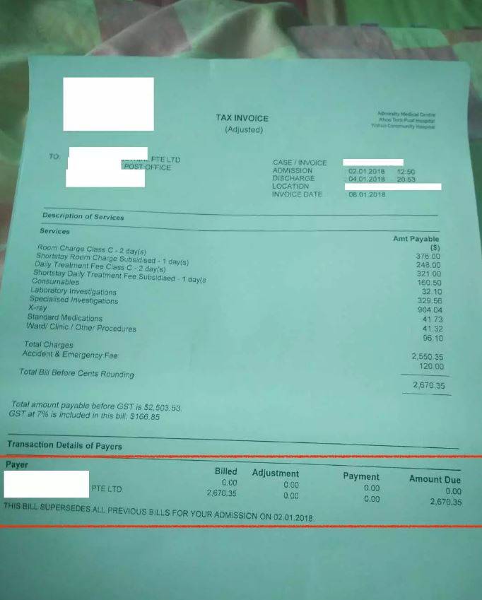 为此,有网媒也咨询了新加坡外籍劳工中心,他们表示:根据雇佣法,即使非工伤情况下,雇主还是需要负责S先生的医疗费,不可以从薪金中扣除。