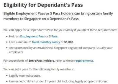 家属准证:可以为家属申请准证,要求基本工资至少5000新元,从2018年1月1日起,基本工资至少6000新元;