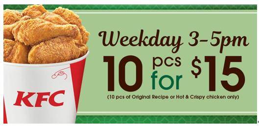 KFC工作日下午茶时段 10块炸鸡只要15新!