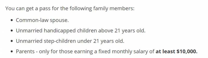 2. SP、EP达到条件的父母。 (持SP和EP的外籍人士月薪要达到10000新币;2018年1月1日后,月薪要达到12000新币)