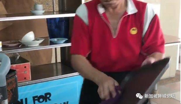 郭五妹昨早从傅海燕手中接过公益餐券固本后,到裕华商场熟食中心用来买“水粿”给丈夫当早餐。