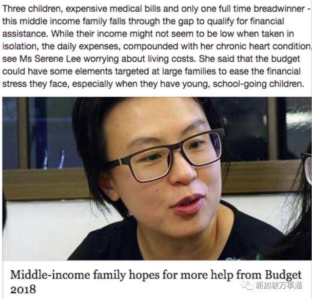 “其实在新加坡,有许多像我们这样的中等收入的家庭,尽管看起来赚得钱已经足够生活了,但我们正在遭受另一种‘变向的痛苦’。”