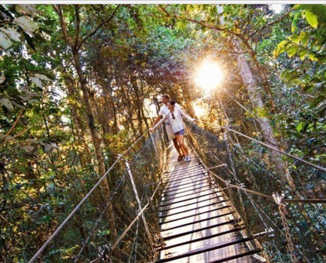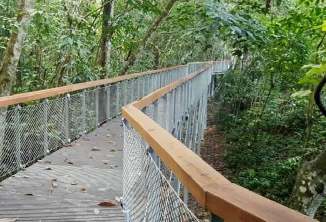 另外Drongo Trail上设有一条木制的高空吊桥,游客可以看到在树冠层下发现动物群,同时俯览整个原始森林的面貌