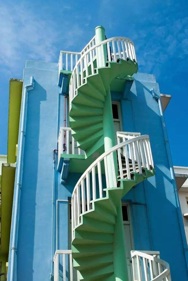 当当当当~这个旋转楼梯是不是非常的好看!想知道在哪里可以找到吗~嘻嘻,其实这排楼梯就位于Bugis Village里麦当劳的正后方, 雅柏熟食中心的斜对面哦。不用刻意找角度, 这排楼梯本身就已经带着浓浓的复古风情了,拍出来一定很有感觉~喜欢撞色的小伙伴还可以尝试其他有趣的拍法哦。