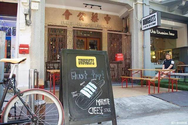 Druggists啤酒屋所在地是从前的中药公会,改造成酒吧时保留了中药公会的招牌和不少原来的摆设。