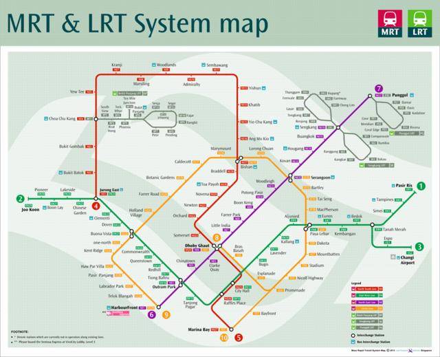 这是新加坡地铁路线图: