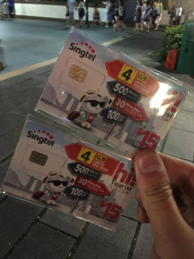 此行我们也是买的Tourist SIM card。Singtel的4G卡,我们买的是有效期5天的(还有天数更长的),15新币,三卡合一(大卡,小卡,Nano卡都能用),有4GB流量,500MIN国内通话,30min国际通话。