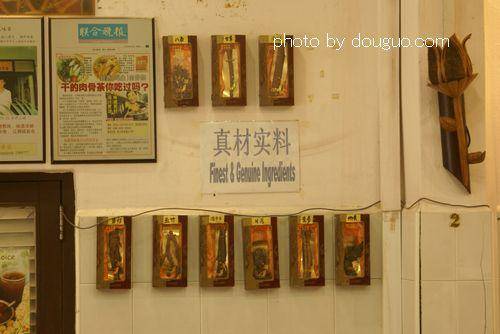 所以肉骨茶里有一股浓浓的药材味道,我们吃的这一家墙上还挂了9种药材的实物,以证明自己的用料实惠:八角、甘草、肉桂、当归、玉竹、淮牛夕、川芎、党参、地黄。