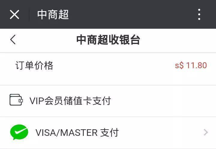 第三,最后就是付款了,选择合适的付款方式,可以使用中商超 VIP 会员储值卡、Visa / Master支付 ↓↓
