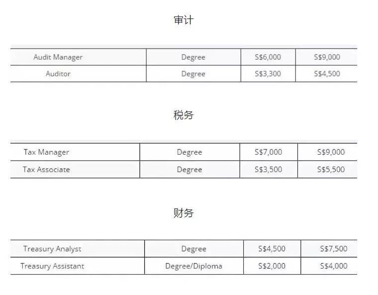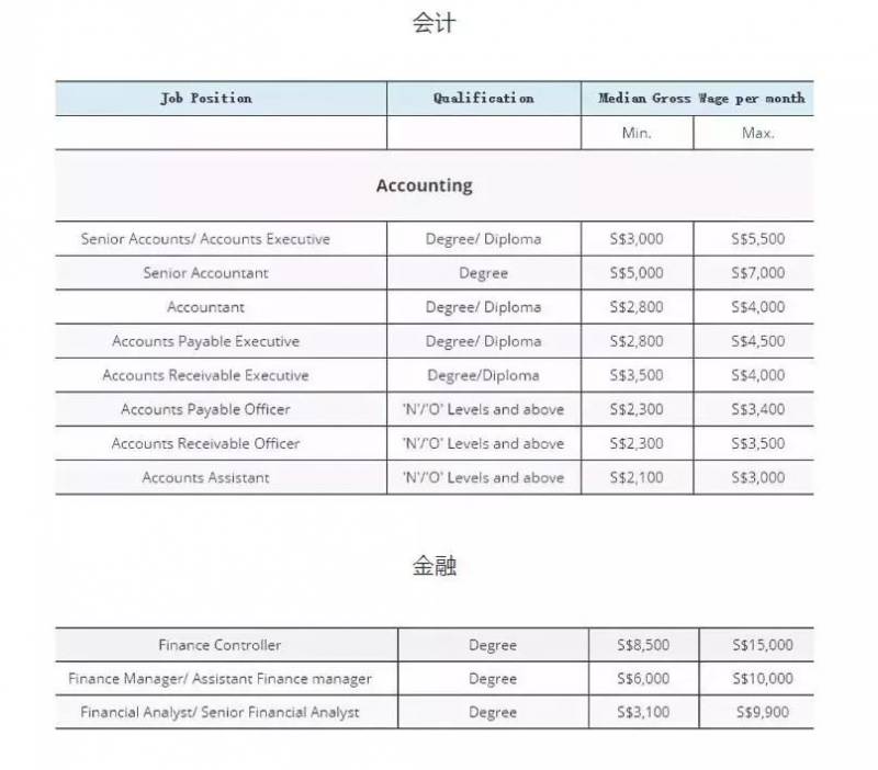 根据Seedly的一项报告,新加坡工作者的平均年薪是67152新币,平均月薪为5596新币(包括雇主的公积金供款),新加坡工作人士平均,每周工作时间为45.1小时,高薪行业排名前几位的是,会计,银行与金融、医疗保健与生命科学以及信息技术(非政客,商人等职业)。