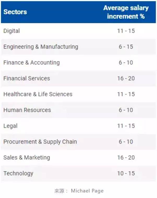 Michael Page调查显示在新加坡跳槽加薪率最高行业依次为:
