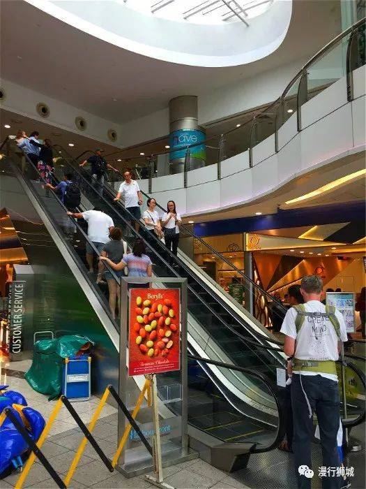 新加坡扶梯习惯是靠左站,右边是快速通道,请扶好扶手,注意安全!