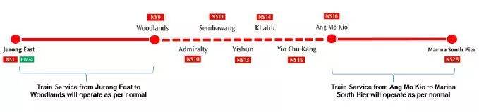 这一次,受影响的站点在海军部至杨厝港地铁站之间。