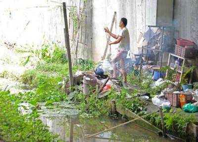 洗碗洗衣冲凉时,他就用他眼前“沟渠”里的雨水完成。水面上,还浮了几叶浮萍。洗好的衣服就放在一边的竹竿上晾晒